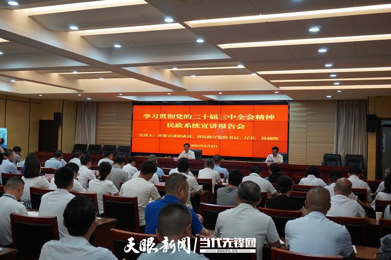 9月6日,學(xué)習(xí)貫徹黨的二十屆三中全會(huì)精神省委宣講團(tuán)在貴州省民政廳進(jìn)行全省民政系統(tǒng)宣講。省委宣講團(tuán)成員,省民政廳黨組書記、廳長(zhǎng)孫擁輝作宣講報(bào)告。 報(bào)告會(huì)上,孫擁輝從深刻領(lǐng)會(huì)圍繞中國(guó)式現(xiàn)代化進(jìn)一步全面深化改革的考慮、過程和成果,牢牢把握進(jìn)一步全面深化改革的總體要求,把握中央進(jìn)一步全面深化改革的重大舉措和省委貫徹落實(shí)舉措,扎實(shí)謀劃實(shí)施全省民政領(lǐng)域改革等方面,對(duì)黨的二十屆三中全會(huì)精神和省委十三屆五次全會(huì)精神進(jìn)行系統(tǒng)宣講和闡釋。 報(bào)告會(huì)把講好“民政話”作為鮮明特色,堅(jiān)持吃透上情、立足省情、把握民情相結(jié)合,從民政角度講準(zhǔn)、講深、講實(shí)中央和省委改革部署,深刻分析積極應(yīng)對(duì)人口老齡化、鞏固拓展脫貧攻堅(jiān)成果同鄉(xiāng)村振興有效銜接、民政服務(wù)對(duì)象新需求、民政工作服務(wù)高質(zhì)量發(fā)展等形勢(shì)任務(wù),明確加強(qiáng)普惠性、基礎(chǔ)性、兜底性民生建設(shè)的政策方向,提出推動(dòng)養(yǎng)老服務(wù)、特殊困難群體保障、專項(xiàng)事務(wù)、基層基礎(chǔ)建設(shè)的改革思路舉措。 大家紛紛表示,報(bào)告政治站位高、內(nèi)容落點(diǎn)實(shí),主題鮮明、重點(diǎn)突出,緊扣民政工作實(shí)際,對(duì)大家深刻理解全面把握黨的二十屆三中全會(huì)精神和省委十三屆五次全會(huì)精神,進(jìn)一步做好民政工作凝聚了共識(shí)、明確了思路、堅(jiān)定了信心?!皟和】党砷L(zhǎng)事關(guān)國(guó)家和民族的未來(lái),事關(guān)千千萬(wàn)萬(wàn)家庭的幸福安康,黨的二十屆三中全會(huì)明確了要健全兒童合法權(quán)益保障制度的重大改革任務(wù),不僅為新時(shí)代兒童事業(yè)發(fā)展提供了根本遵循,也為接下來(lái)的工作指明了方向。”貴州省民政廳兒童福利處處長(zhǎng)余麗紅說。接下來(lái),將按照中央和省委的改革部署,聚焦兒童福利保障政策完善,加強(qiáng)孤兒和事實(shí)無(wú)人撫養(yǎng)兒童基本生活保障,優(yōu)化兒童福利資源配置和服務(wù),拓展推動(dòng)未成年人救助保護(hù)機(jī)構(gòu)建設(shè)和職能發(fā)揮,健全基層兒童福利工作網(wǎng)絡(luò)。 貴州省民政廳養(yǎng)老服務(wù)處負(fù)責(zé)人米建表示,此次宣講報(bào)告會(huì)對(duì)大家系統(tǒng)領(lǐng)會(huì)黨的二十屆三中全會(huì)精神和省委十三屆五次全會(huì)精神具有很強(qiáng)的輔導(dǎo)作用,將在學(xué)懂弄通的基礎(chǔ)上,緊密結(jié)合貴州實(shí)際,做好養(yǎng)老服務(wù)工作,讓更多老年人享受到更高品質(zhì)、更加便捷、更多元化的基本養(yǎng)老服務(wù)。 (據(jù)貴州省民政廳) |