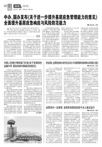 中辦、國辦發(fā)布《關于進一步提升基層應急管理能力的意見》全面提升基層應急響應與風險防范能力