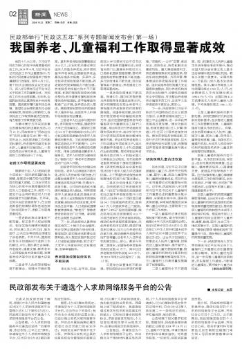 民政部舉行“民政這五年”系列專題新聞發(fā)布會(huì)(第一場(chǎng)) 我國(guó)養(yǎng)老、兒童福利工作取得顯著成效