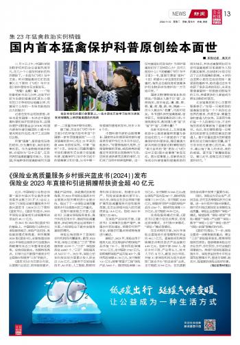 《保險業(yè)高質(zhì)量服務(wù)鄉(xiāng)村振興藍(lán)皮書(2024))發(fā)布保險業(yè)2023年直接和引進(jìn)捐贈幫扶資金超40億元