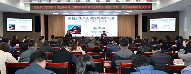 ■ 本報(bào)記者 李慶 記者從江蘇省民政廳官網(wǎng)獲悉,近日,江蘇省民政廳舉辦處級以上干部學(xué)習(xí)貫徹習(xí)近平新時(shí)代中國特色社會主義思想和黨的二十屆三中全會精神專題讀書班。廳黨組書記、廳長謝曉軍作動員講話。 會議指出,要提高政治站位,充分認(rèn)識學(xué)習(xí)貫徹全會精神的重要意義,進(jìn)一步深刻領(lǐng)悟“兩個(gè)確立”的決定性意義,增強(qiáng)“四個(gè)意識”、堅(jiān)定“四個(gè)自信”、做到“兩個(gè)維護(hù)”,持續(xù)興起學(xué)習(xí)貫徹三中全會精神的熱潮,堅(jiān)決把思想和行動統(tǒng)一到黨中央和省委決策部署上來,切實(shí)把所學(xué)、所思、所悟轉(zhuǎn)化為進(jìn)一步全面深化改革的實(shí)干、實(shí)績、實(shí)效。 會議強(qiáng)調(diào),要把握目標(biāo)要求,深刻學(xué)習(xí)領(lǐng)會三中全會的精神實(shí)質(zhì)和豐富內(nèi)涵,堅(jiān)定改革信心、強(qiáng)化改革責(zé)任、匯聚改革合力,緊密結(jié)合江蘇民政實(shí)際深入研究推動改革工作,以釘釘子精神抓好改革落實(shí),努力取得更加扎實(shí)、更為明顯的改革成效,為助力譜寫“強(qiáng)富美高”新江蘇現(xiàn)代化建設(shè)新篇章貢獻(xiàn)民政力量。 會議要求,堅(jiān)持學(xué)用結(jié)合,認(rèn)真謀劃貫徹全會精神的具體舉措,弘揚(yáng)優(yōu)良學(xué)風(fēng),全面系統(tǒng)學(xué)、深入思考學(xué)、聯(lián)系實(shí)際學(xué),著力克服學(xué)習(xí)上的形式主義,真正把全會精神學(xué)深悟透,切實(shí)在學(xué)思悟上下功夫見成效。要理論聯(lián)系實(shí)際,聚焦全省民政領(lǐng)域改革發(fā)展的痛點(diǎn)難點(diǎn)堵點(diǎn),謀劃貫徹全會精神的具體措施,探尋全面深化全省民政領(lǐng)域改革、助力中國式現(xiàn)代化江蘇新實(shí)踐的方案、路徑和模式,切實(shí)在知信行上下功夫見成效。 讀書班堅(jiān)持目標(biāo)導(dǎo)向、問題導(dǎo)向和效果導(dǎo)向,靈活采取個(gè)人自學(xué)、集中領(lǐng)學(xué)、輔導(dǎo)授課、現(xiàn)場教學(xué)和交流研討等形式,組織參訓(xùn)人員深入學(xué)習(xí)領(lǐng)會黨的二十屆三中全會精神和習(xí)近平總書記關(guān)于全面深化改革的系列重要論述精神。先后邀請來自南京大學(xué)、國防大學(xué)、省委黨校等高校的教授,圍繞“以新質(zhì)生產(chǎn)力增強(qiáng)發(fā)展新動能”“學(xué)習(xí)貫徹習(xí)近平關(guān)于全面深化改革的重要論述”“國際形勢和國家安全”“習(xí)近平文化思想”等主題作專題輔導(dǎo)授課。組織參訓(xùn)黨員、干部分批參觀南京市高新技術(shù)企業(yè)、開展推進(jìn)“幸福民政365工程”實(shí)施調(diào)研成果交流。 廳領(lǐng)導(dǎo)班子成員、廳機(jī)關(guān)處級干部、廳直屬單位領(lǐng)導(dǎo)班子成員參加讀書班。廳機(jī)關(guān)科級以下干部參加讀書班集中授課。 |