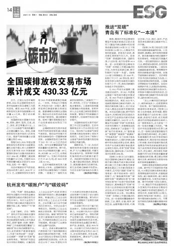 全國碳排放權(quán)交易市場累計成交430.33億元