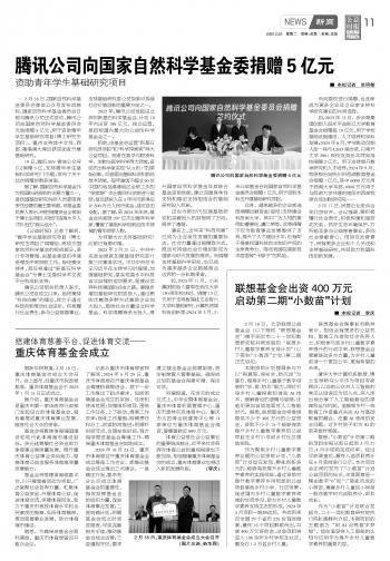 騰訊公司向國家自然科學(xué)基金委捐贈(zèng)5億元