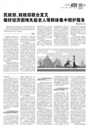 民政部、財(cái)政部聯(lián)合發(fā)文做好經(jīng)濟(jì)困難失能老人等群體集中照護(hù)服務(wù)