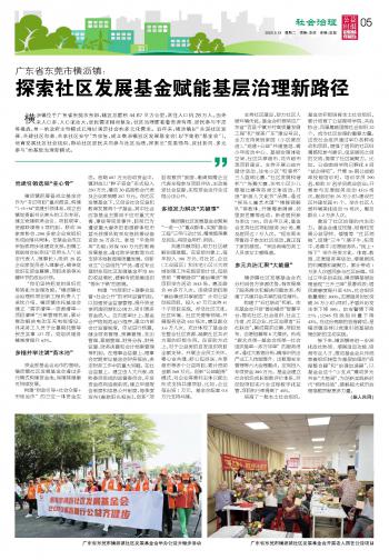 廣東省東莞市橫瀝鎮(zhèn):探索社區(qū)發(fā)展基金賦能基層治理新路徑