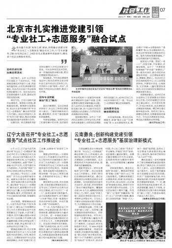 北京市扎實推進(jìn)黨建引領(lǐng)“專業(yè)社工+志愿服務(wù)”融合試點(diǎn)