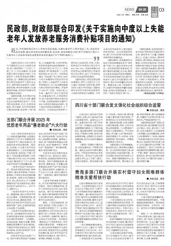 民政部、財政部聯(lián)合印發(fā)《關于實施向中度以上失能老年人發(fā)放養(yǎng)老服務消費補貼項目的通知》