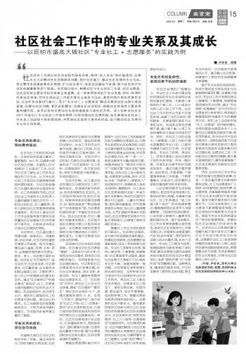社區(qū)社會(huì)工作中的專業(yè)關(guān)系及其成長(zhǎng)——以昆明市盛高大城社區(qū)“專業(yè)社工+志愿服務(wù)”的實(shí)踐為例